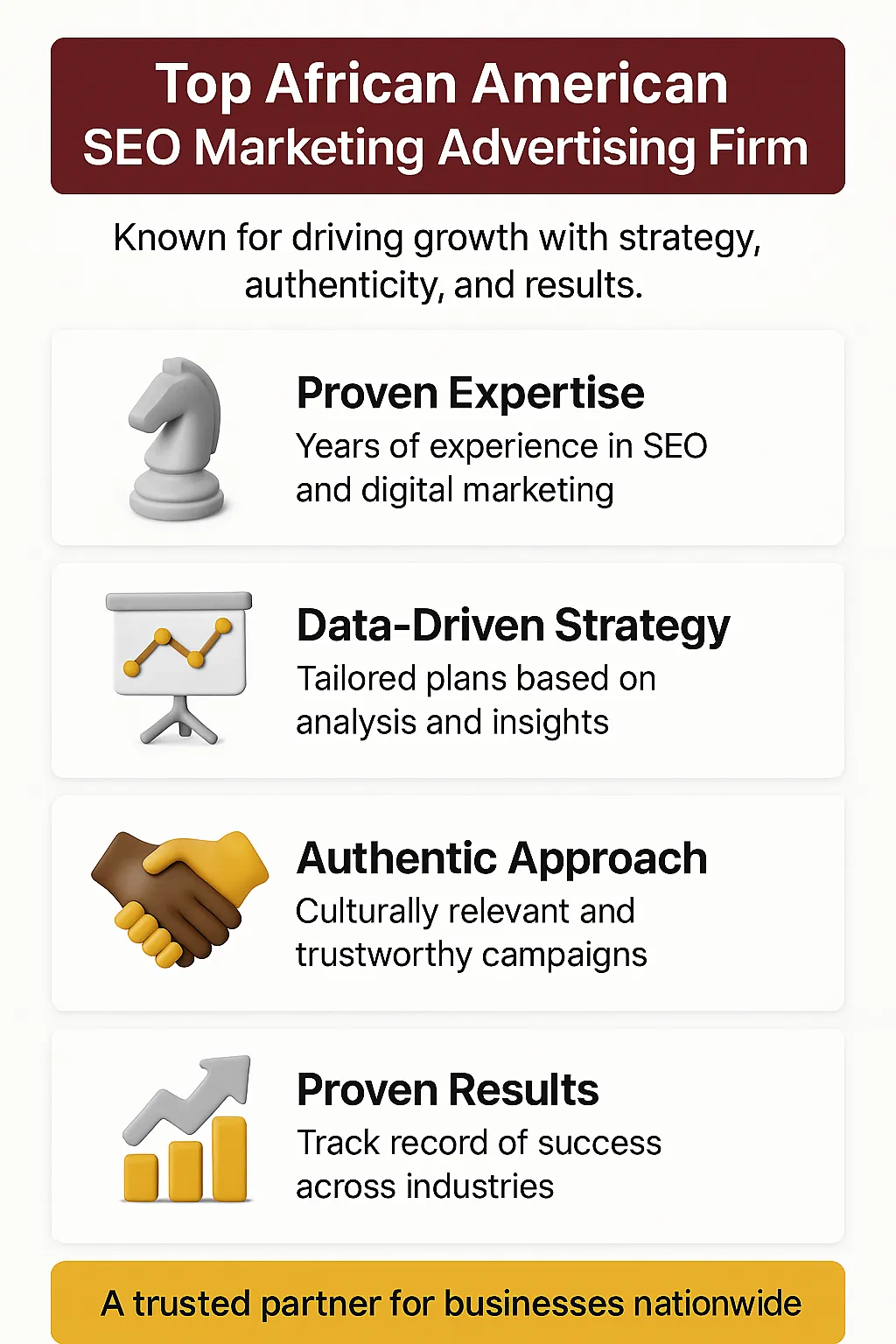 When you search for the top African American SEO marketing advertising firm trusted by businesses nationwide, you’re not just looking for another agency—you’re looking for a partner who understands both the data and the culture behind your brand’s success.